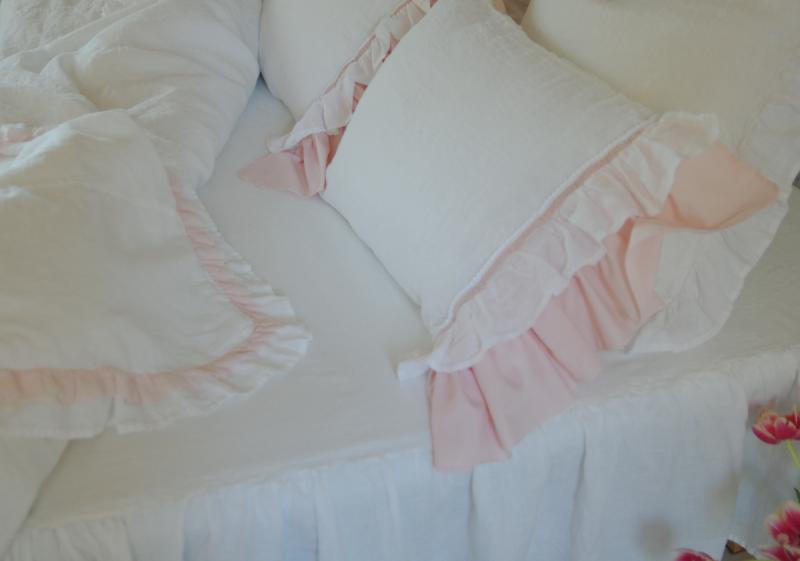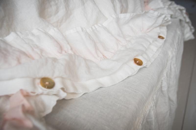 The bedding set PEARL, graceful and delicate, decorated with pale pink cotton ruffles, pink antique velvet ribbon and white lace. Perfect for a romantic personality. This bedding set is made from 100% natural linen fabric. Linen is the healthiest choice of fabric for your bedroom thanks to its anti-microbial qualities.