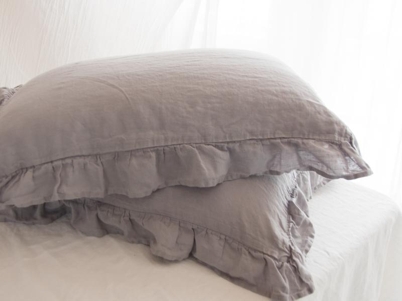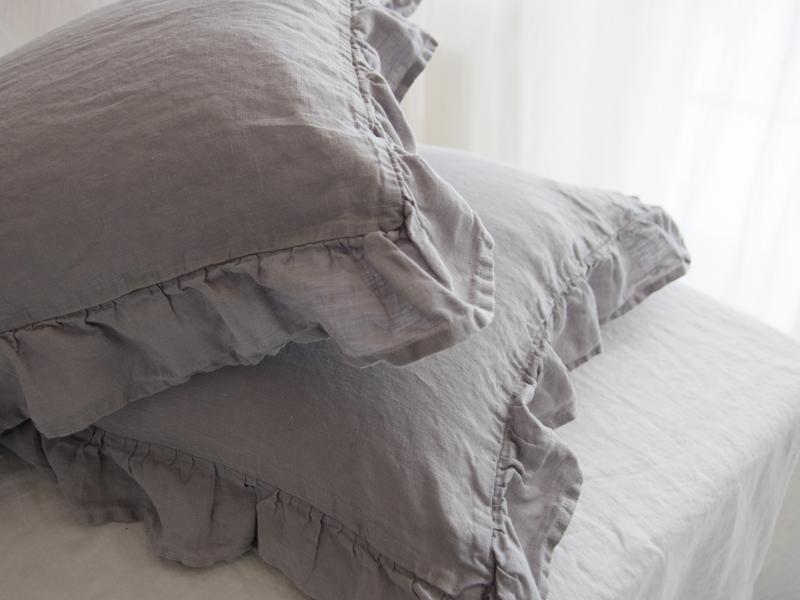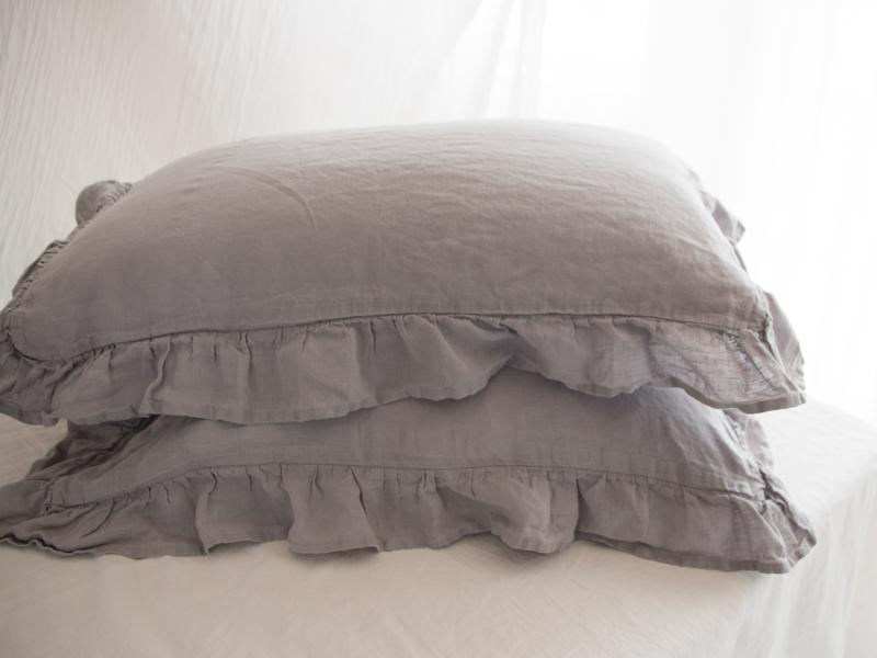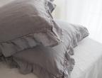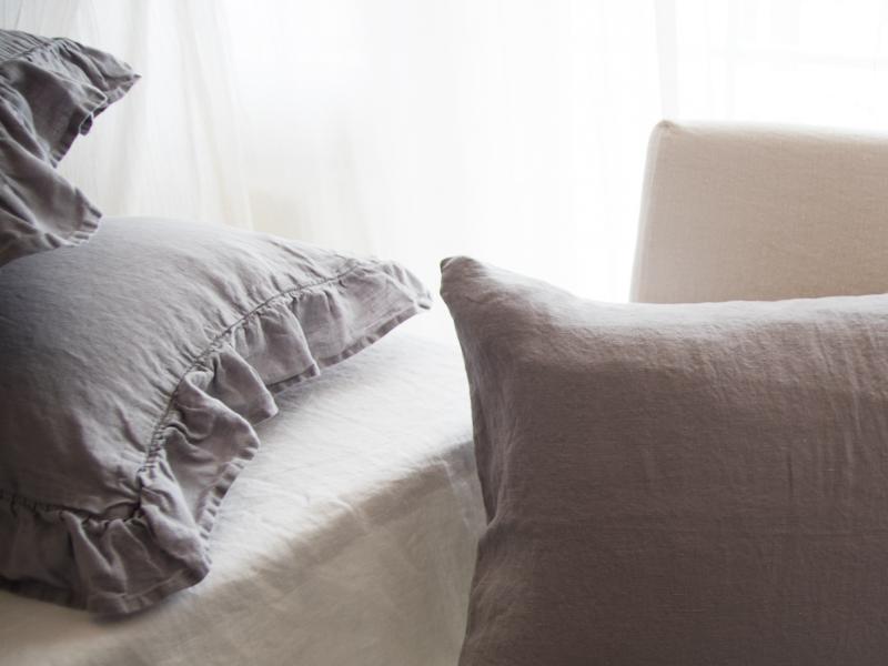 Rüüzidega padjapüür on valmistatud 100% linasest kangast. Toode ei tõmbu pesus kokku kuna on läbinud spetsiaalse pesu. Kangas on katsudes õrn-pehme.