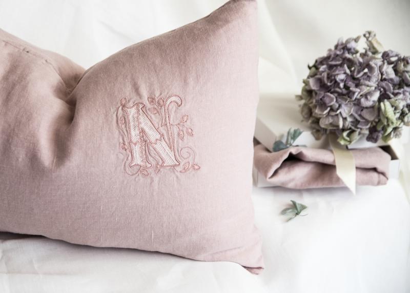 Romaantilise monogrammiga kaunistatud padjapüür. Valikus:
