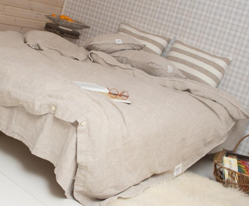 Комплект выполнен из 100 % неотбеленного льняного полотна, предварительно простиранного в специальной технике, благодаря чему ткань стала невероятно мягкой, бархатистой на ощупь, практически не нуждается в глажении. Неотбеленная льняная ткань сохраняет все природные полезные качества льна. После стирки изделие не дает усадку.